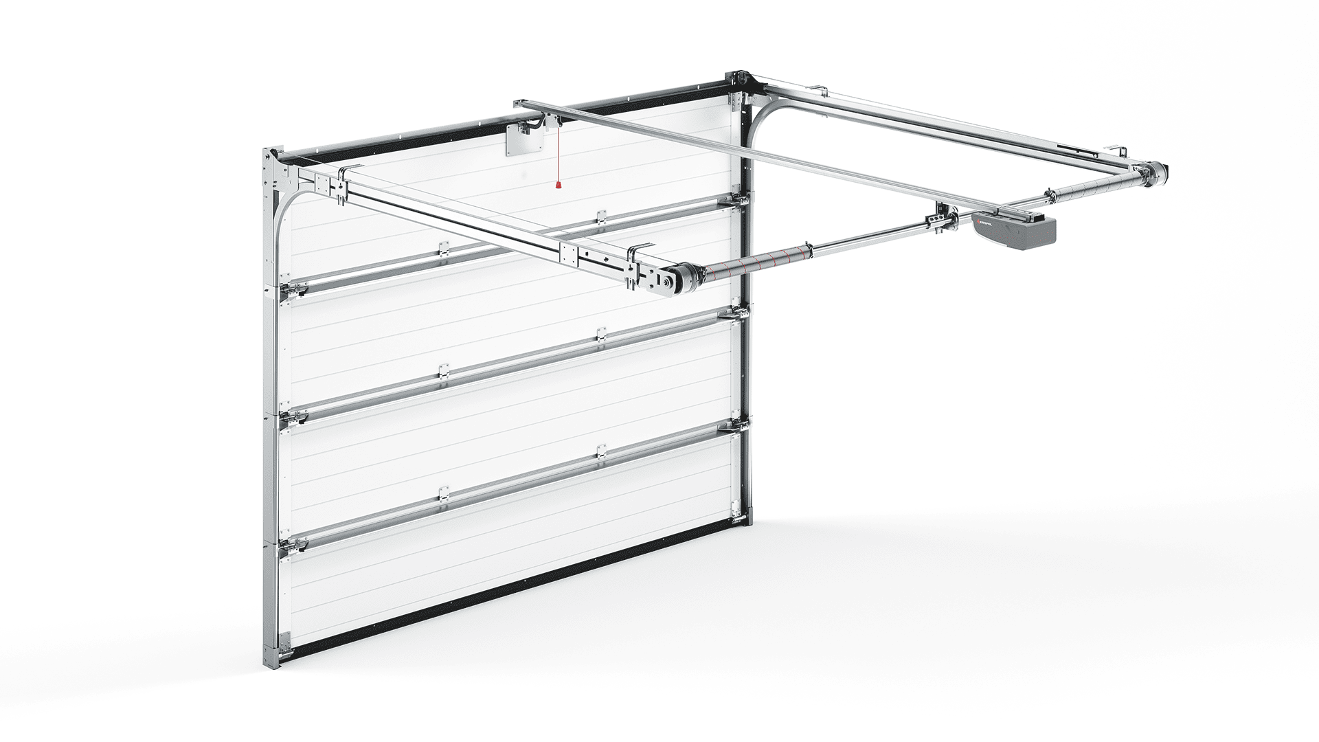 Ворота открываются вертикально вверх и сворачиваются в короб, не занимая место внутри гаража.